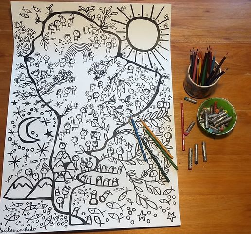 ¡¡ De regalo agregué una imagen blanco y negro de América Latina ilustrada para imprimir y colorear!!